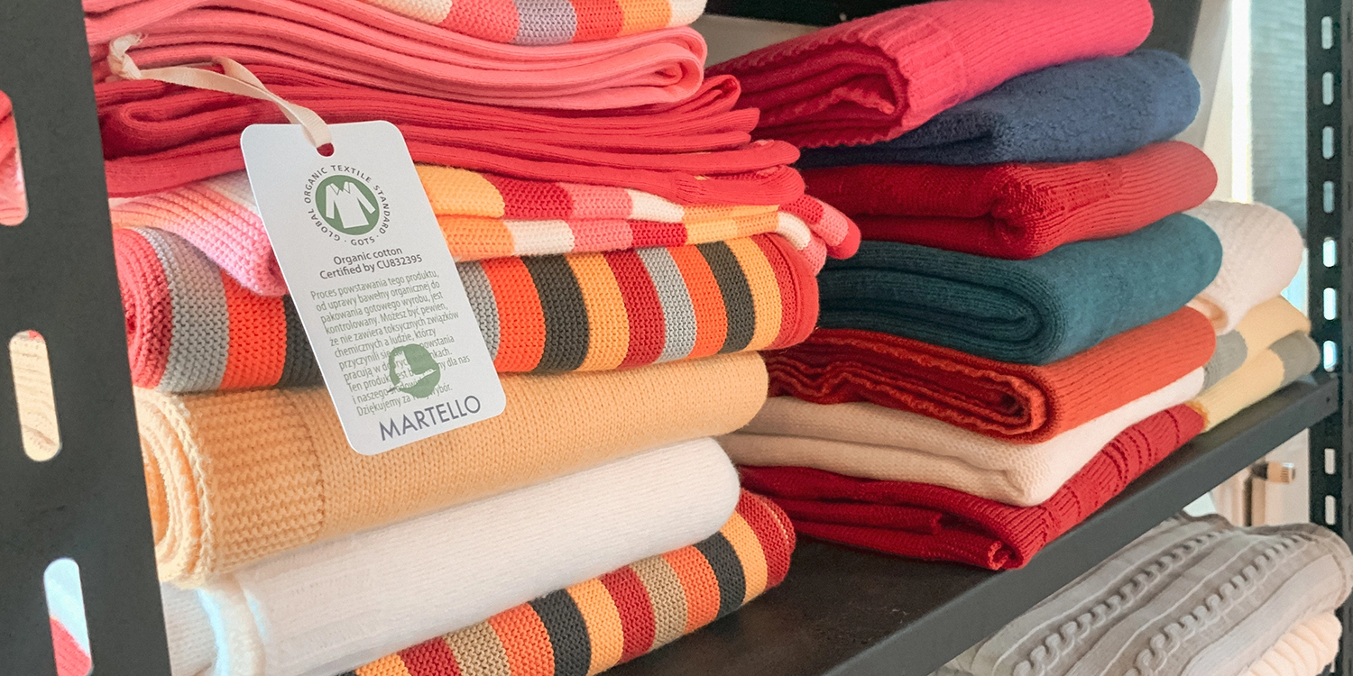 Nasze wysiłki są doceniane międzynarodowo – produkcja koców objęta jest certyfikatem GOTS (Global Organic Textile Standard). Produkty oznaczone tym logo i numerem certyfikatu Martello powstają w sposób w pełni odpowiedzialny społecznie – nie tylko w naszej dziewiarni, ale też w każdym etapie wcześniejszego łańcucha dostaw. Wszystkie osoby zaangażowane w uprawę, przędzenie i farbowanie surowców pracują legalnie, w bezpiecznych i etycznych warunkach.