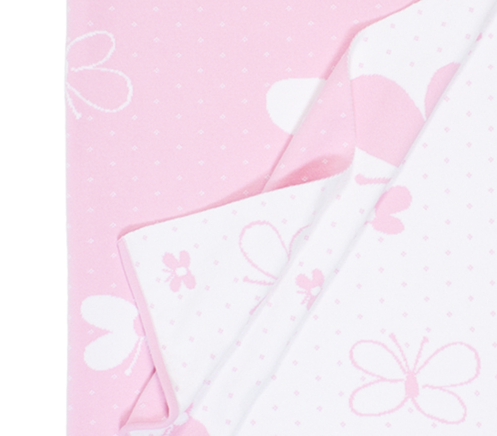A soft cotton blanket with a charming butterfly pattern, with the child’s name woven among them. It can be paired with a matching personalized pillowcase.
