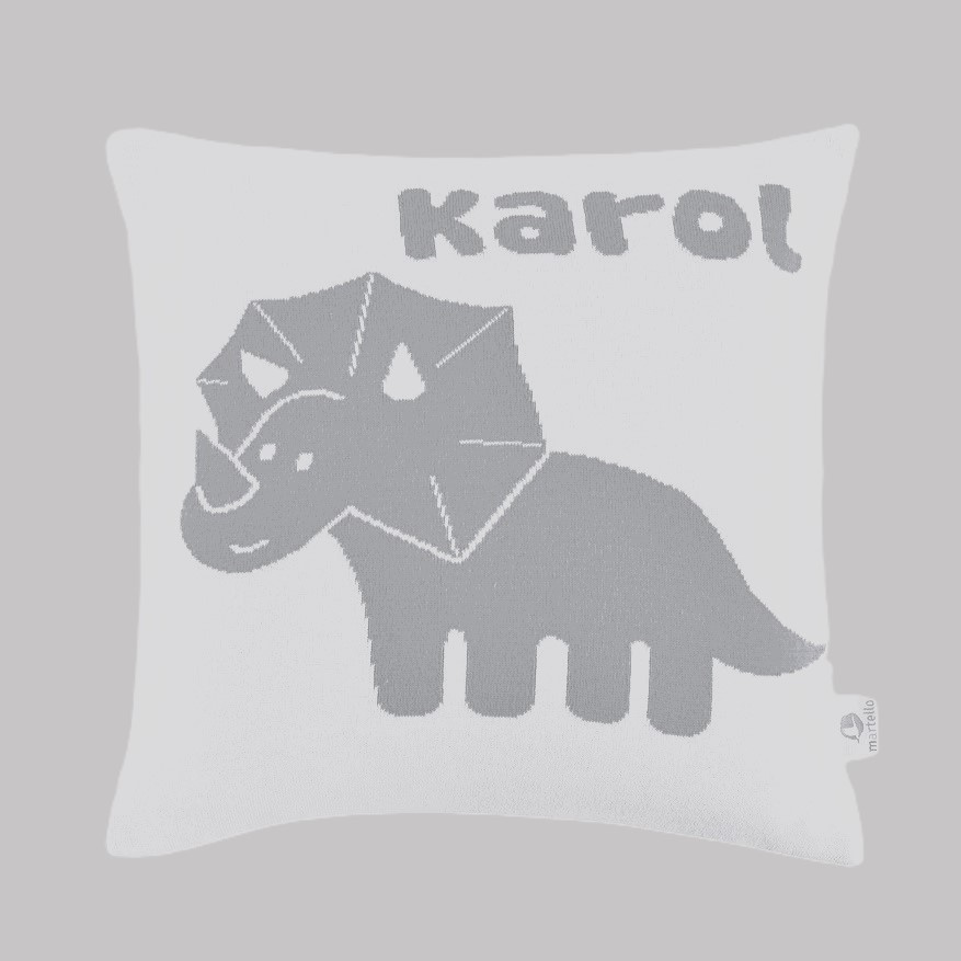 If you are looking for a gift for a small dinosaur fan, we have a great offer for you. Pillowcase with the name of the child with a triceratops motif. On one side the name and dinosaur, on the other only a dinosaur but in reverse colors. This pillowcase will be the perfect complement to our dinosaur blanket, available in two sizes 75 x 100 cm and 100 x 130 cm. Both pillowcases and blankets can be used in other color combinations as part of our organic cotton color palette. Please inform us in the comments to the order.