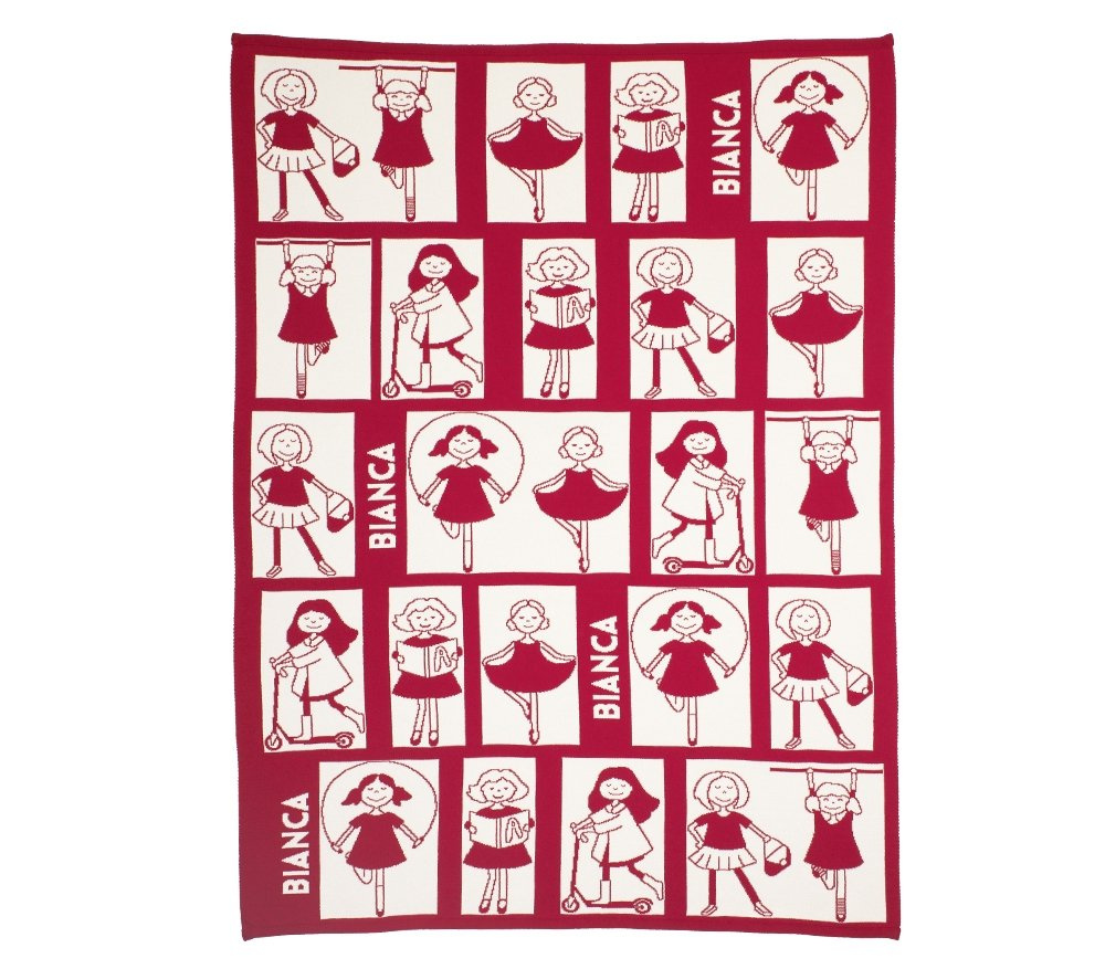 Każde okienko kryje inną przygodę rezolutnej dziewczynki: tu skacze na skakance, tam pędzi na hulajnodze, gdzie indziej tańczy jak mała gwiazda. A wszystko to pod czujnym okiem imienia Twojego dziecka które dumnie pojawia się na kilku panelach - obok dziewczynki na skakance, nadając kocykowi wyjątkowy, osobisty charakter.