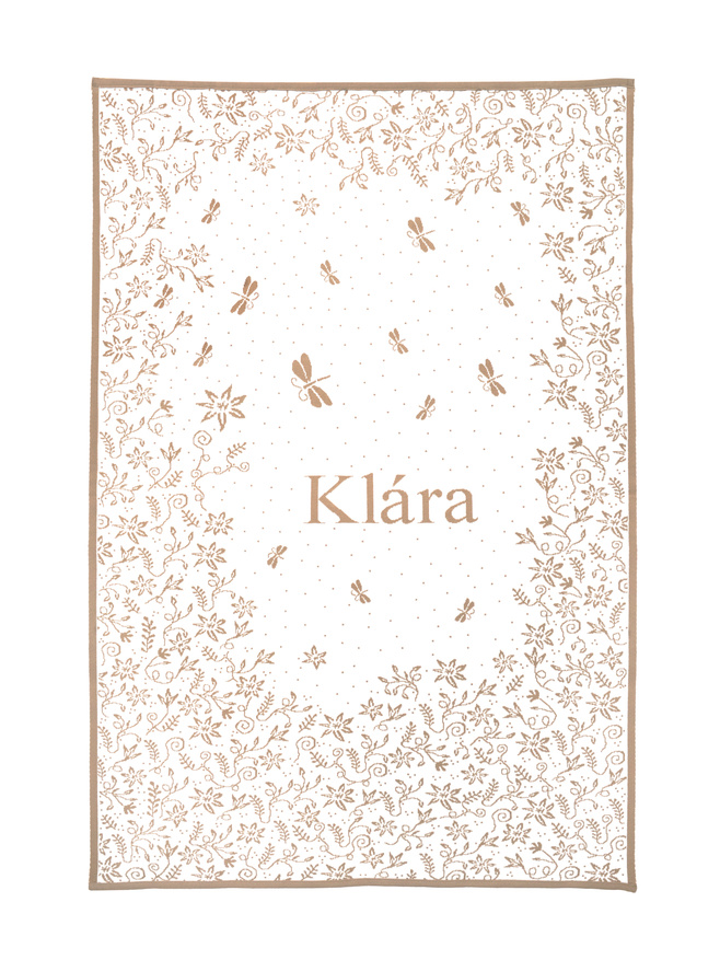 • Kocyk ŁĄKA z imieniem i danymi noworodka - z bawełny organicznej 75 x 100 cm
